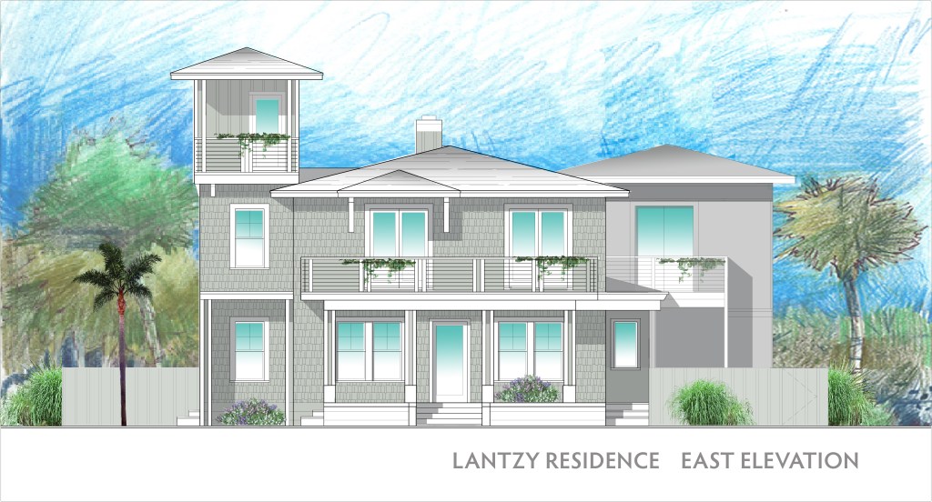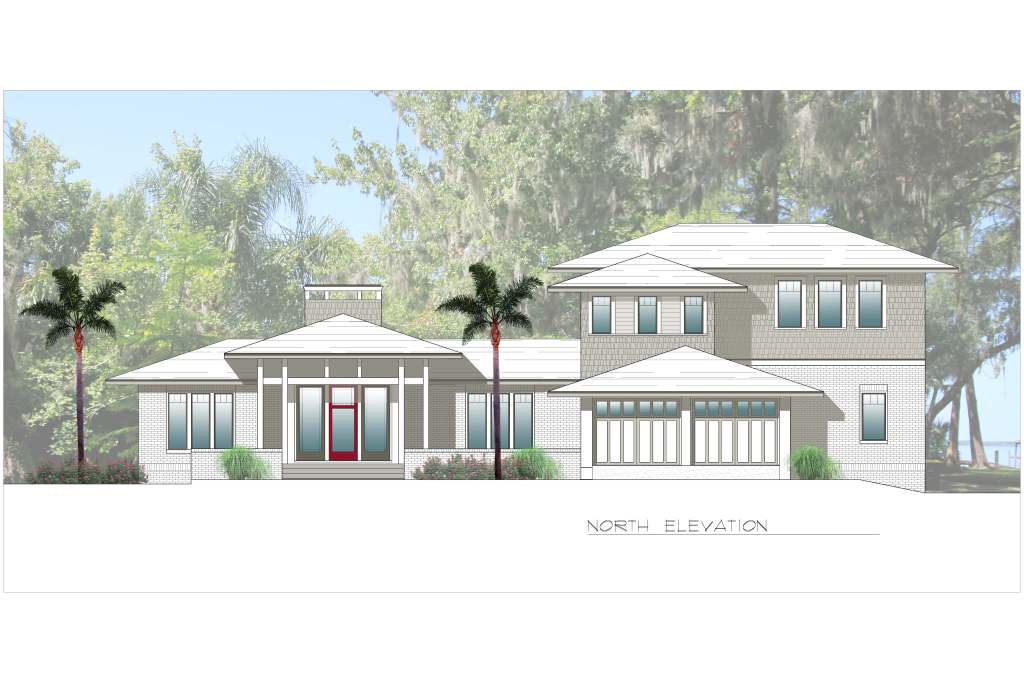 The two-story 3100 gsf residence is in early design stages, located along the St. John’s River in the San Jose area. Unbuilt.
