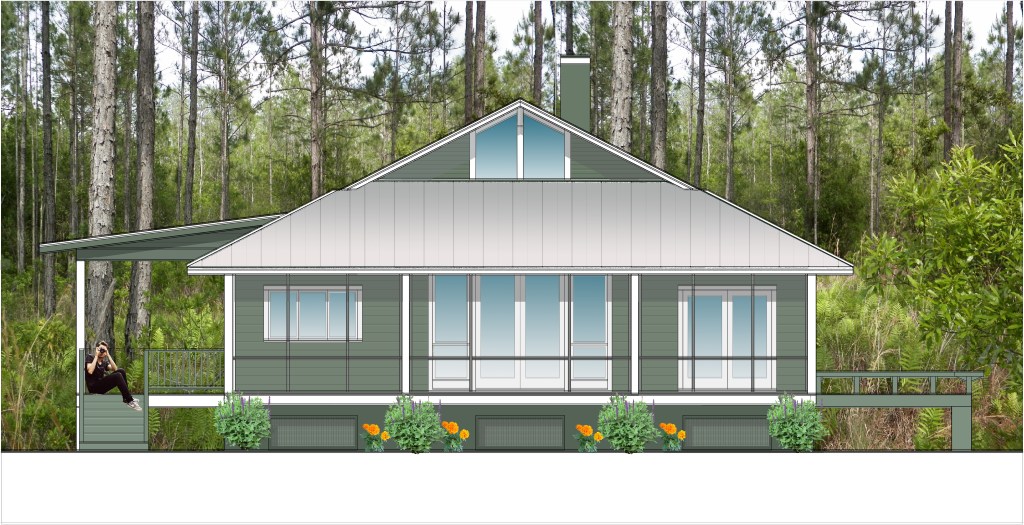 The one-story lake house is located on Lake Fanny, Hawthorn, Florida. The 1266 gsf house includes a 2 story main hall. Unbuilt.