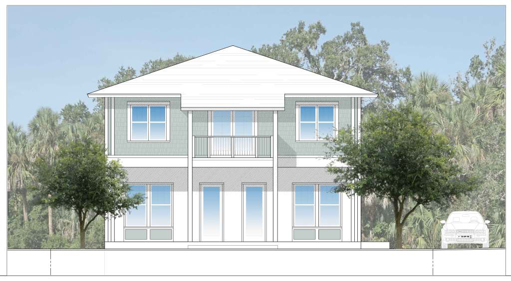 The mixed-use project consists of a commercial base with an apartment on the second floor, as well as the outbuilding of a two-car carport. The architecture echoes the village character, i.e. small scale & simplicity. The quality of the work exceeds the neighborhood, since the project meets the FBC, FEMA, ADA, & wind codes. Construction in progress, complete fall 2021.
